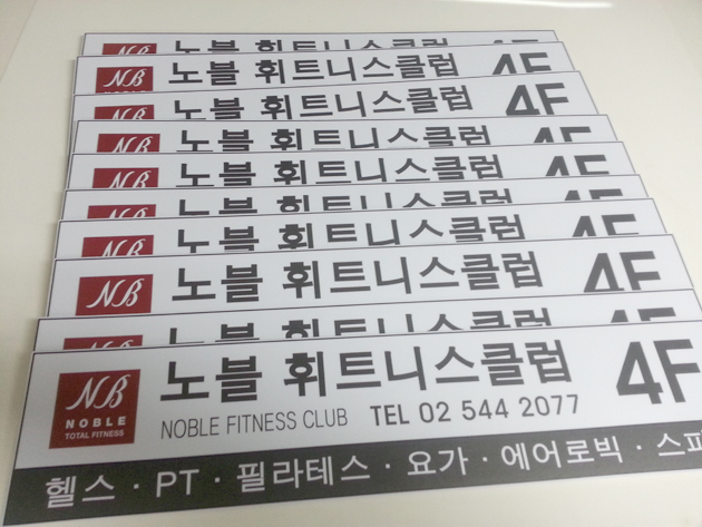 노블 휘트니스클럽(포맥스2T, 실사출력, 양면테이프, 실리콘 별도)900x100mm-5장이상/계단부착광고/-10,000원
