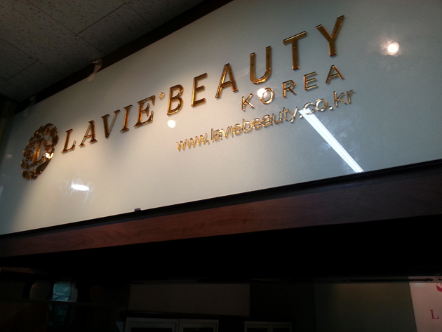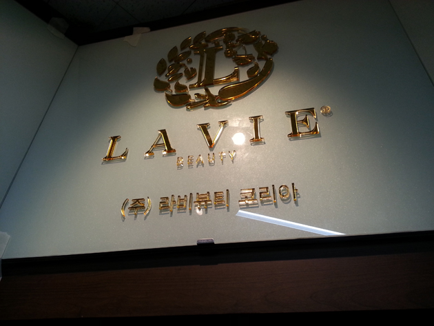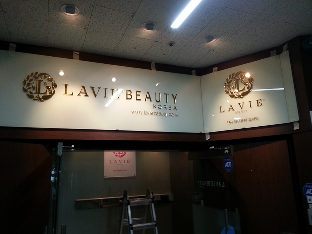 라비뷰티 코리아-LAVIE BEAUTY(아크릴 금경 금색스카시, 시트컷팅, 아크릴현판, 돌출표찰 제작 및 시공)/포토폴리오(현장시공)/(가격전화문의)