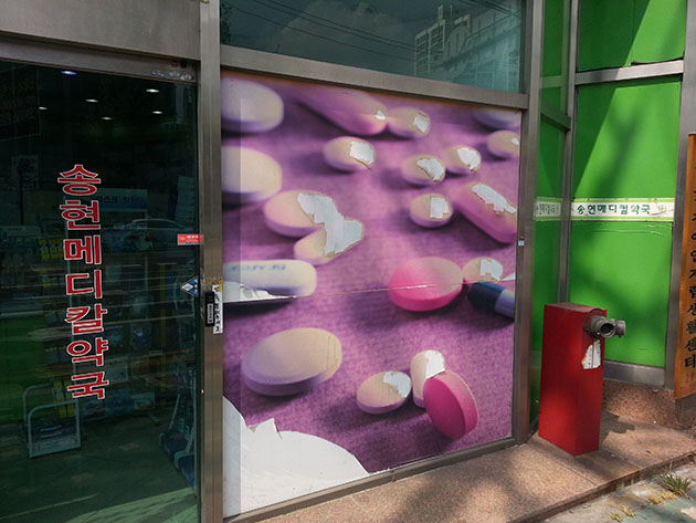 송현메디컬약국(PVC 캘-리무버블)기존시트지 제거 및 현장시공/PVC 캘(영구적)/(가격전화문의)