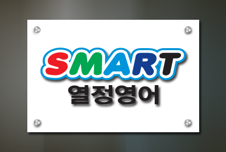 스마트열정영어-고급형(투명아크릴5T+실사출력+입체문자+포맥스3T+장식볼트-뛰움)600x400mm/사무실현판/-170,000원