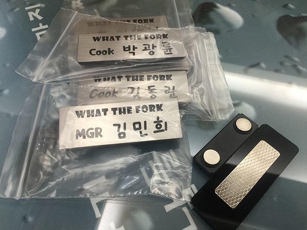 신백승여행사(스텐헤어라인 부식+자석-고급명찰, 신주(금색)부식+자석)70x25mm/명찰/(가격전화문의)