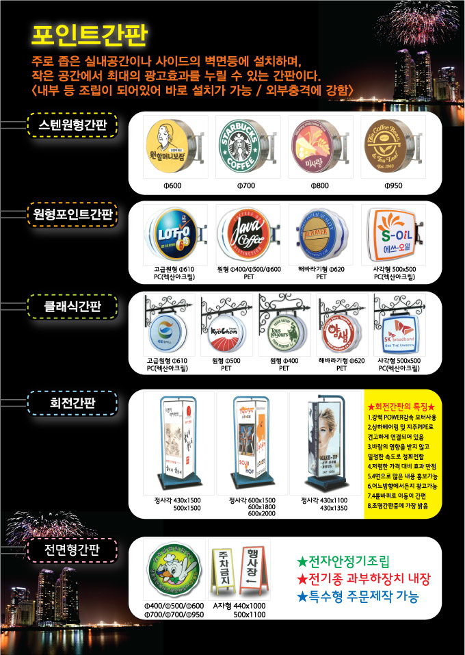 조명용 포인트간판 단가표(PVC 캘 부착)500×500, 600×600, 700x700mm/포인트간판/(가격전화문의)
