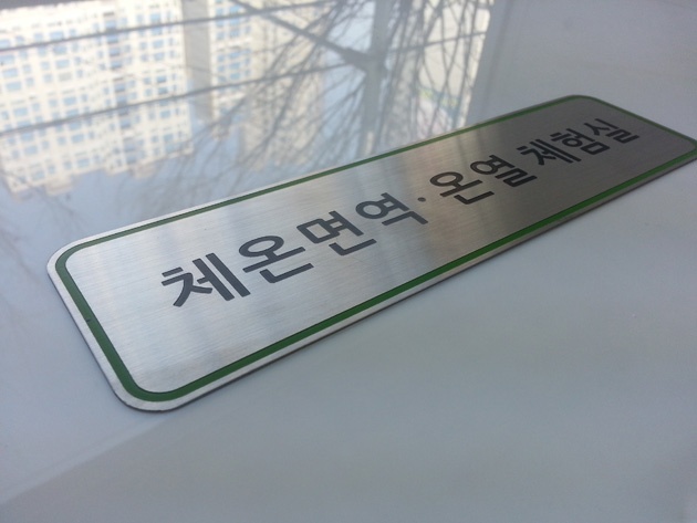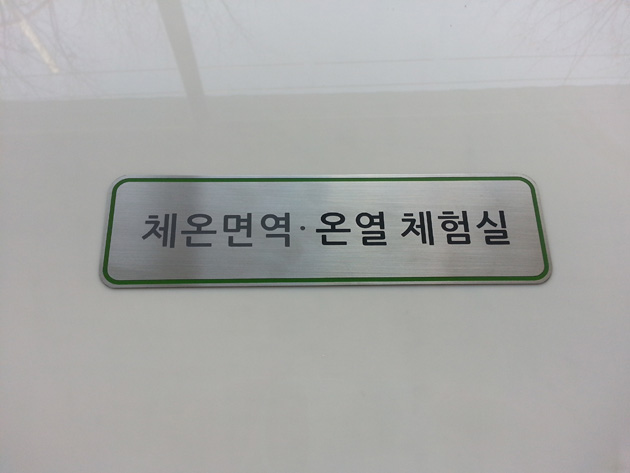 체험면역.온열체험실(스텐레스 부식명판)300x80mm/실크인쇄/(가격전화문의)