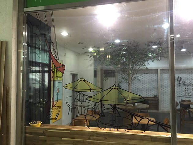 카페-cafe봄날Bomnal(창문썬팅, 갈바글자 스카시, 투명필름 출력 및 시공)/포토폴리오(현장시공)/(가격전화문의)