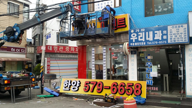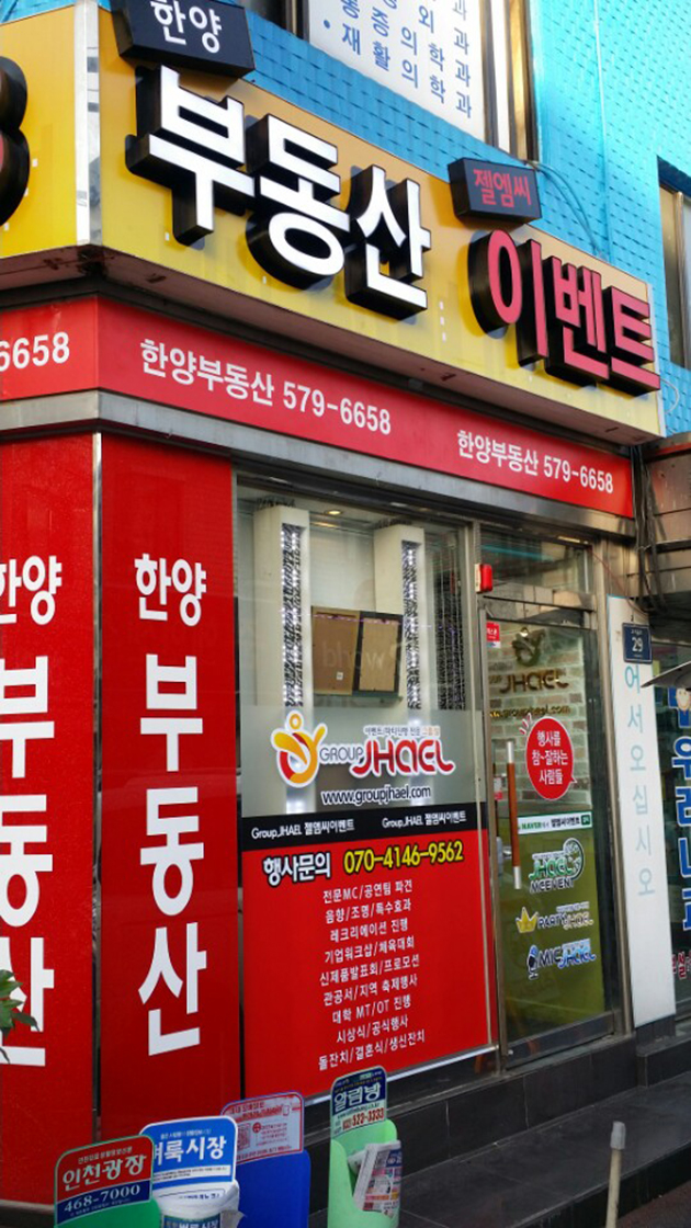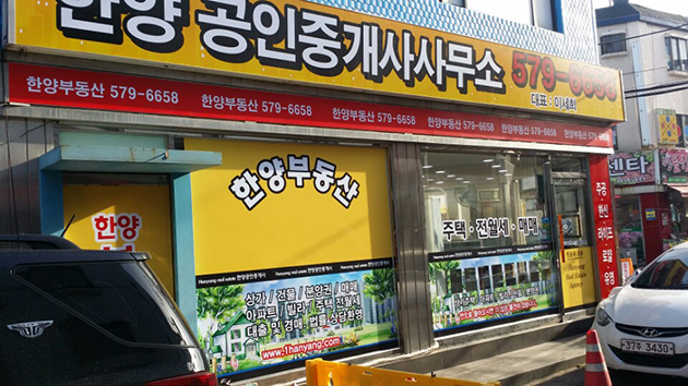 [후렉스간판] 한양부동산(후렉스간판 천갈이, 입체LED 채널간판, 외부썬팅일체, 아크릴스카시글자, 고무스카시글자 제작 및 시공)