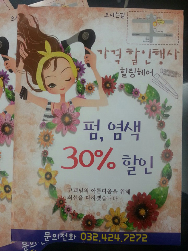 힐링헤어(100아트 A4 1연-4,000장)210x297mm/전단지/(가격전화문의)